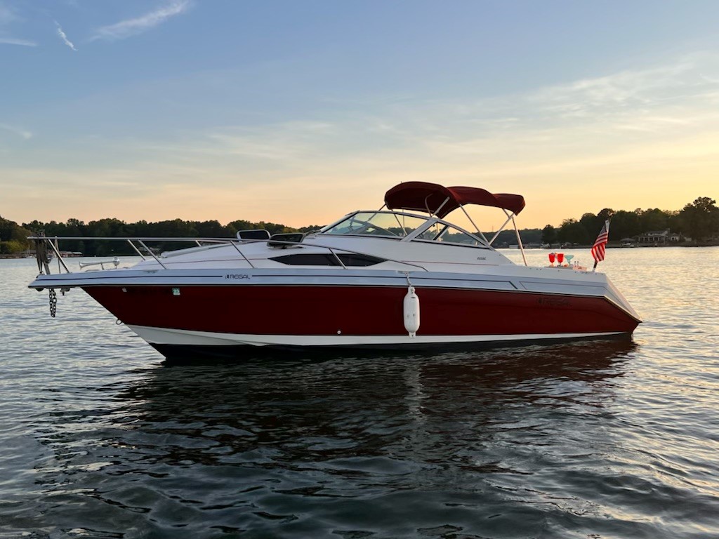 Enjoy Lake Norman in comfort and style in the 23′ Regal Sport Cruiser. Cockpit seats 6 comfortably, Cabin sleeps two. Rent by 1/2 day, full d, overnight or by the week.